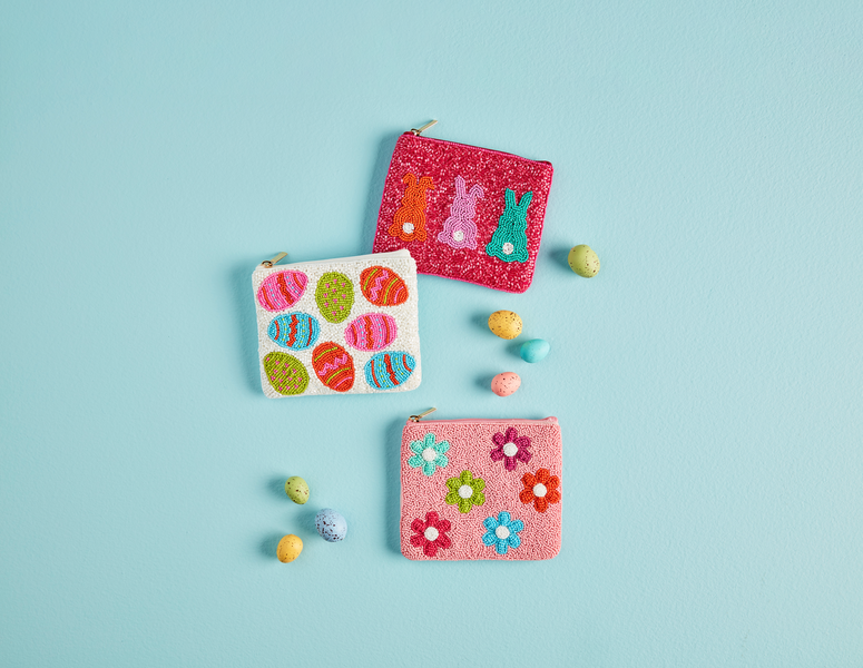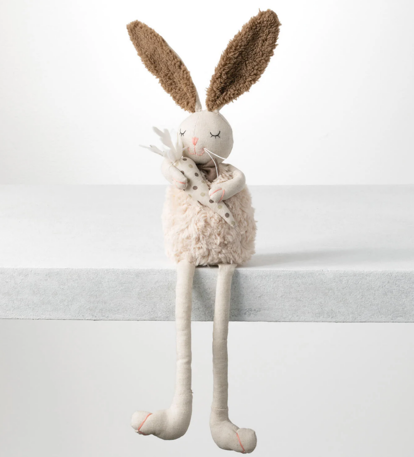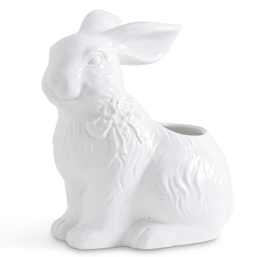 White Ceramic Easter Bunnies w/Pink Flowers (3 Styles)