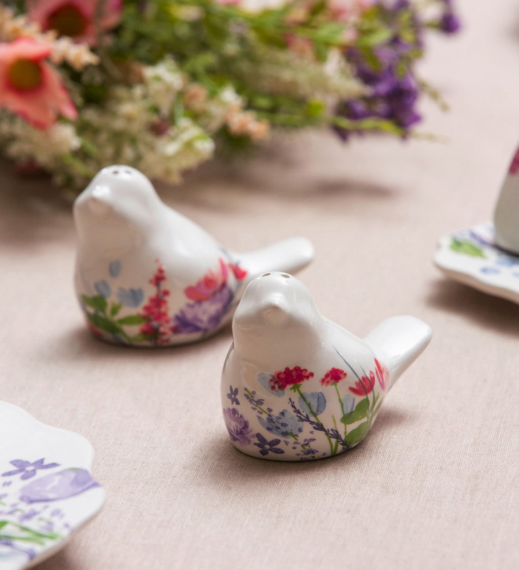 Ceramic Salt & Pepper Shakers Set, Cottage Charm Birds