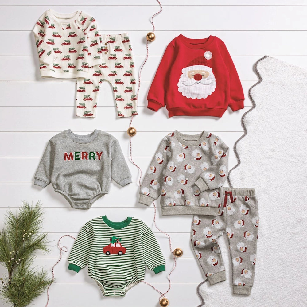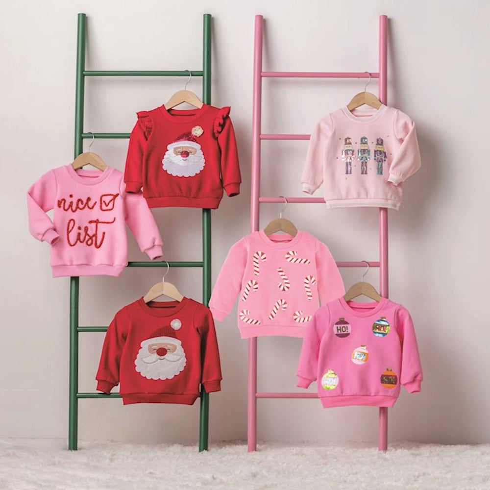 Featuring a playful Santa applique on soft sweatshirt fabric, this festive piece is perfect for Christmas celebrations, family photos, or everyday holiday fun. Comfortable and easy to wear, it’s a holiday essential for little ones.