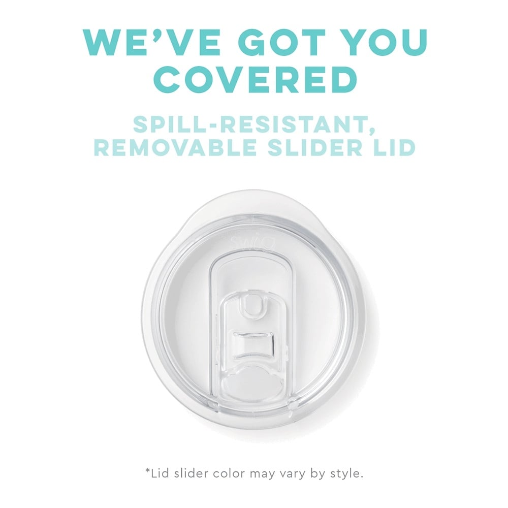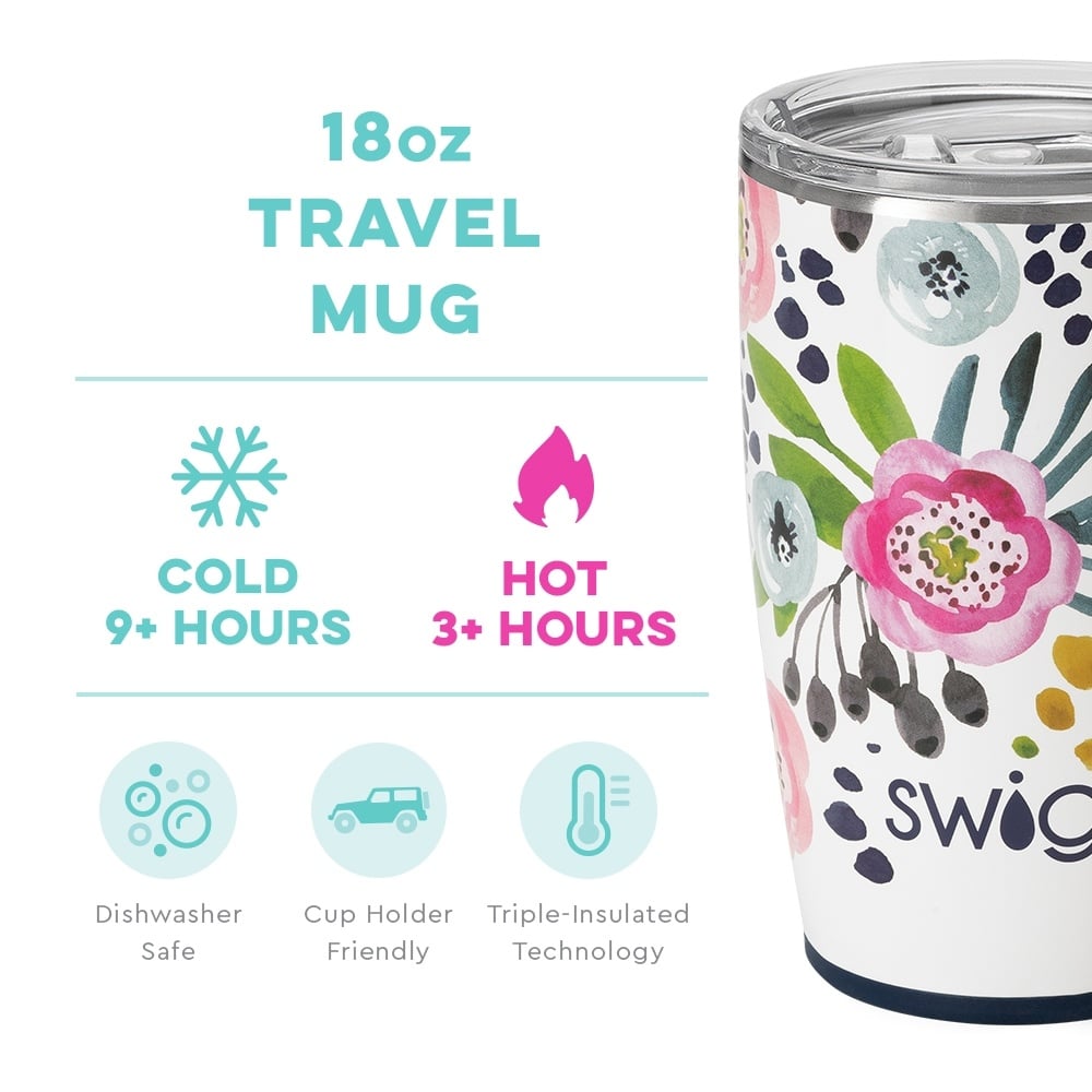 Take a "swig" of whatever fuels your day! Our best-selling 18oz Insulated Travel Mug features a cup holder-friendly shape, making it the perfect travel companion to and from the classroom, the conference room, or even just the living room.