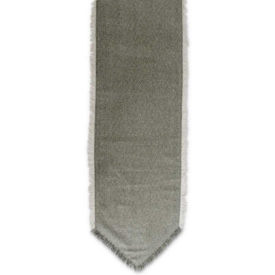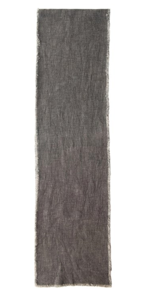 Linen Blend Table Runner with Frayed Edges, Grey Color
