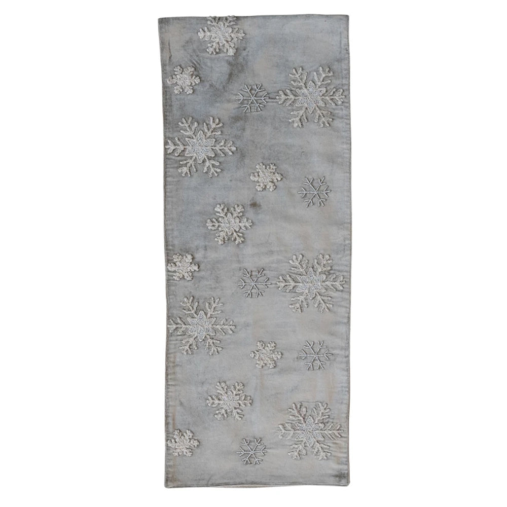 Cotton Velvet Blend Table Runner with Snowflakes & Beads