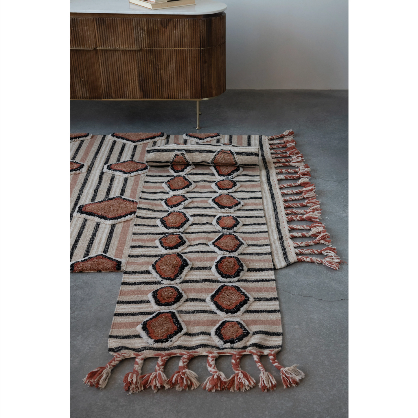 Cotton Tufted Kilim Floor Runner with Braided Tassels