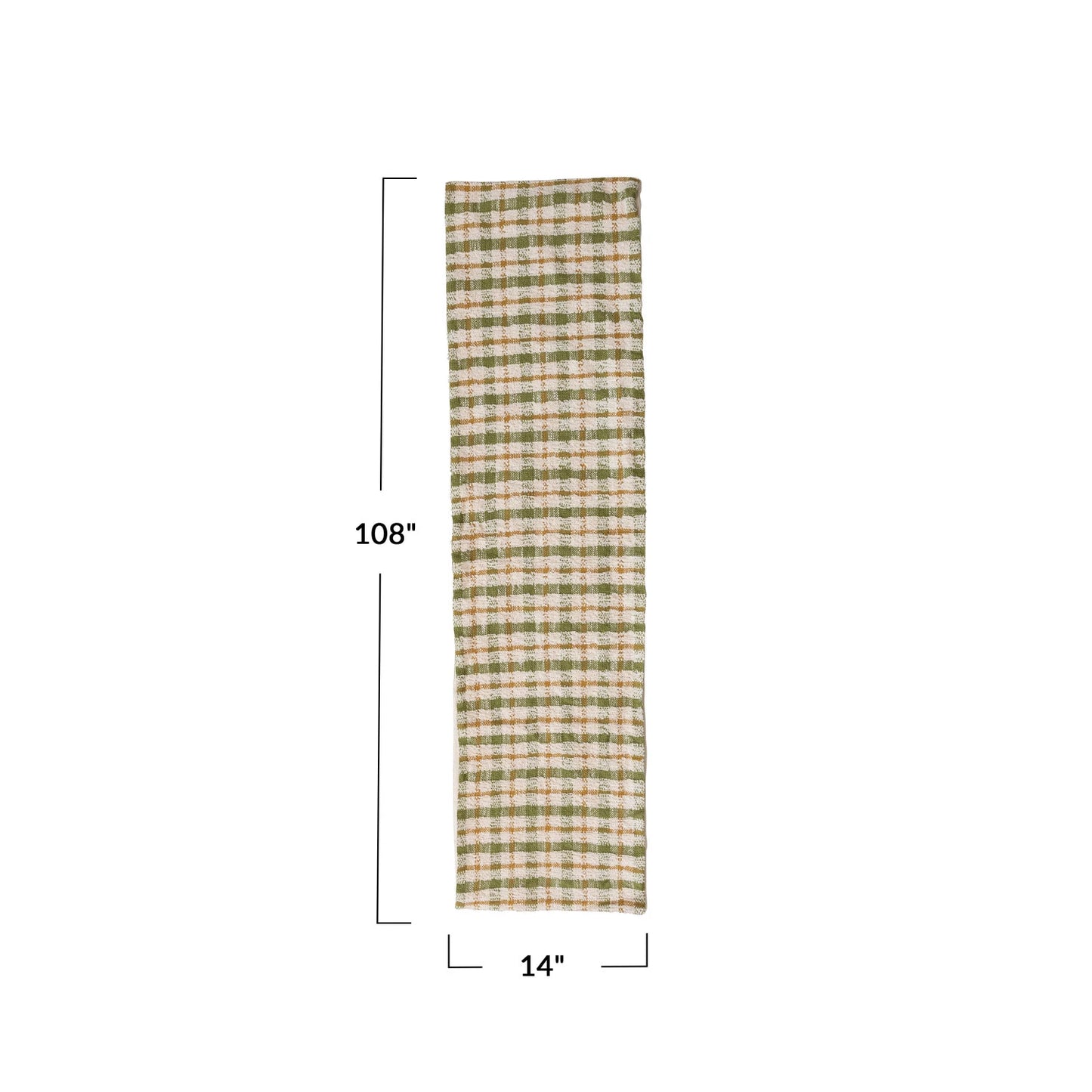 Woven Cotton Table Runner, Cream, Green, Yellow Plaid (108"L x 14"W)