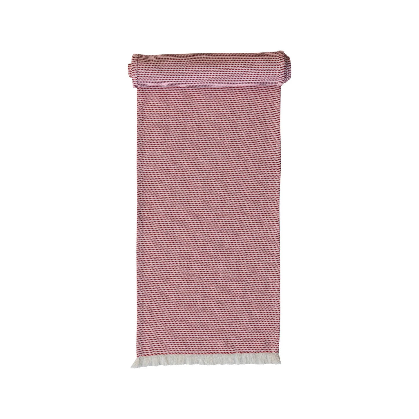 This table runner is a simple and stylish piece that features a classic red and white stripe pattern and a fringe that adds some character and fun to any space. The table runner is ideal for any season, whether it is a spring brunch, a summer barbecue, a fall harvest, or a winter holiday. The table runner is made of cotton, which makes it soft, smooth, durable, and easy to care for. The table runner measures 108 inches in length and 14 inches in width, making it a great fit for most tables. Transform any table into a stylish display with this versatile and functional table runner. A woven cotton table runner with a classic red and white stripe pattern and a fringe that adds some flair and movement. A simple and stylish piece that can match any table setting, from farmhouse to contemporary, casual to formal. This table runner is perfect for any occasion, whether it is a casual family meal, a festive holiday celebration, or a special event.
