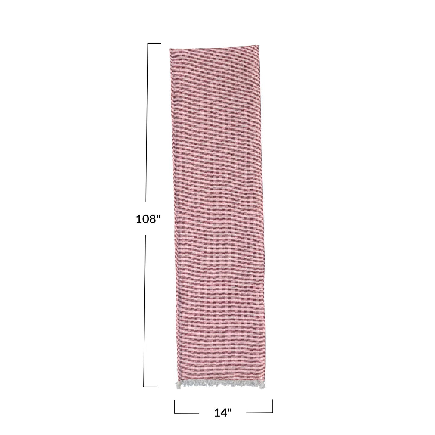 108"L x 14"W Woven Cotton Table Runner w/ Stripes & Fringe, Red & White