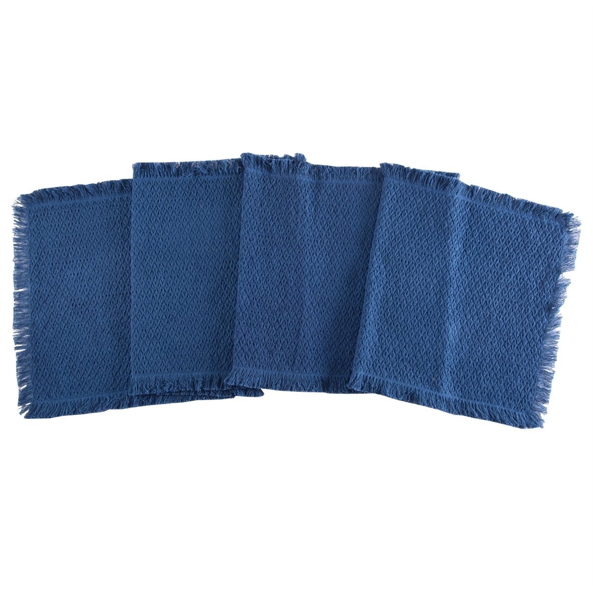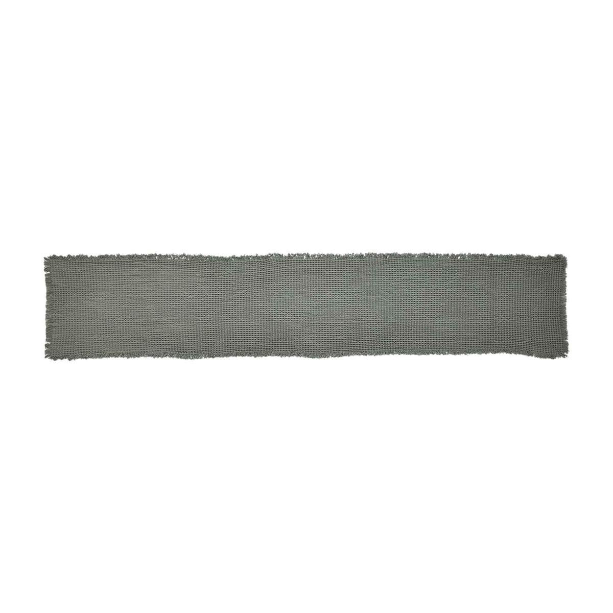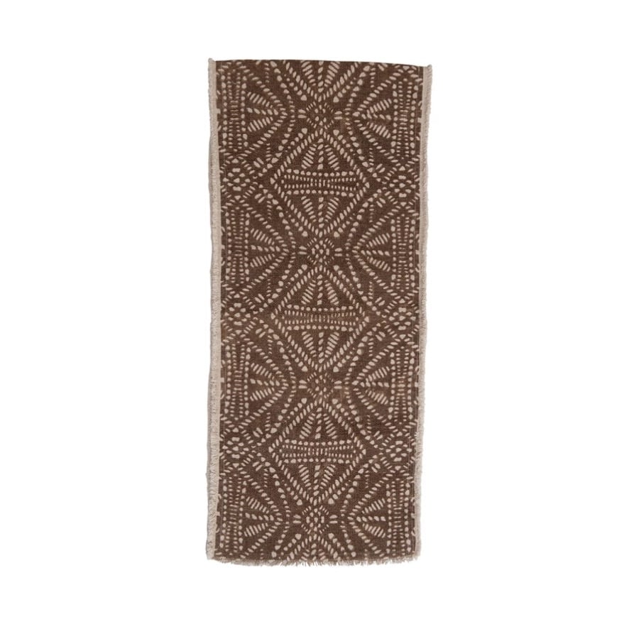 Stonewashed Cotton Canvas Table Runner with Pattern and Frayed Edges