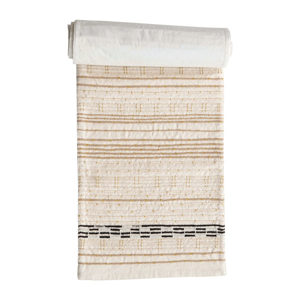 Cotton Embroidered Table Runner with Gold Metallic Stitching