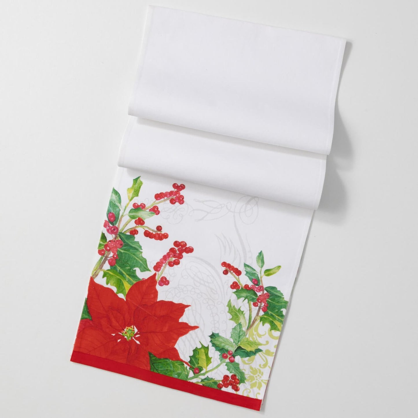 Add Cotton Blend Table Runner with Holly and Fringe to the cart