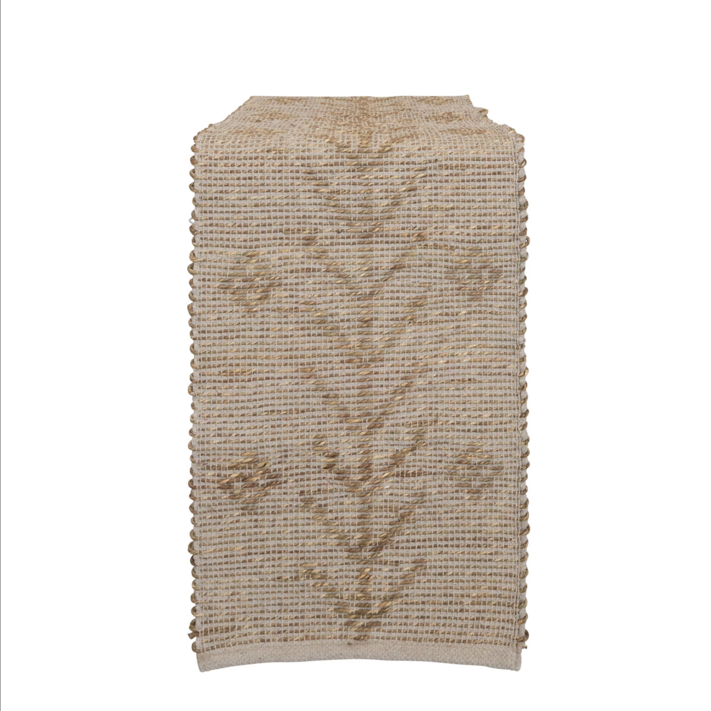 Two-Sided Hand-Woven Seagrass & Cotton Table Runner w/ Design