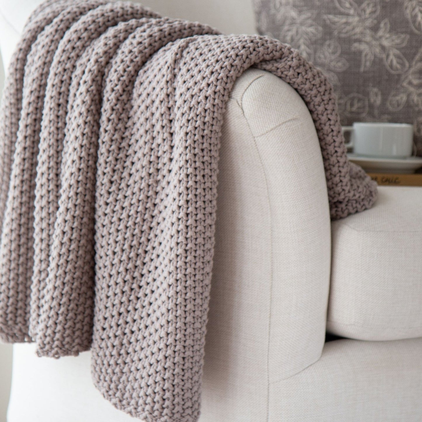 Chloe cotton chunky knit throw - a timeless and classic form of knitting that alternates purl stitch and knits stitch to create a super drape soft flowing knit. This is a medium-weight all-season knit, beautiful to look at with a fabulous drape.