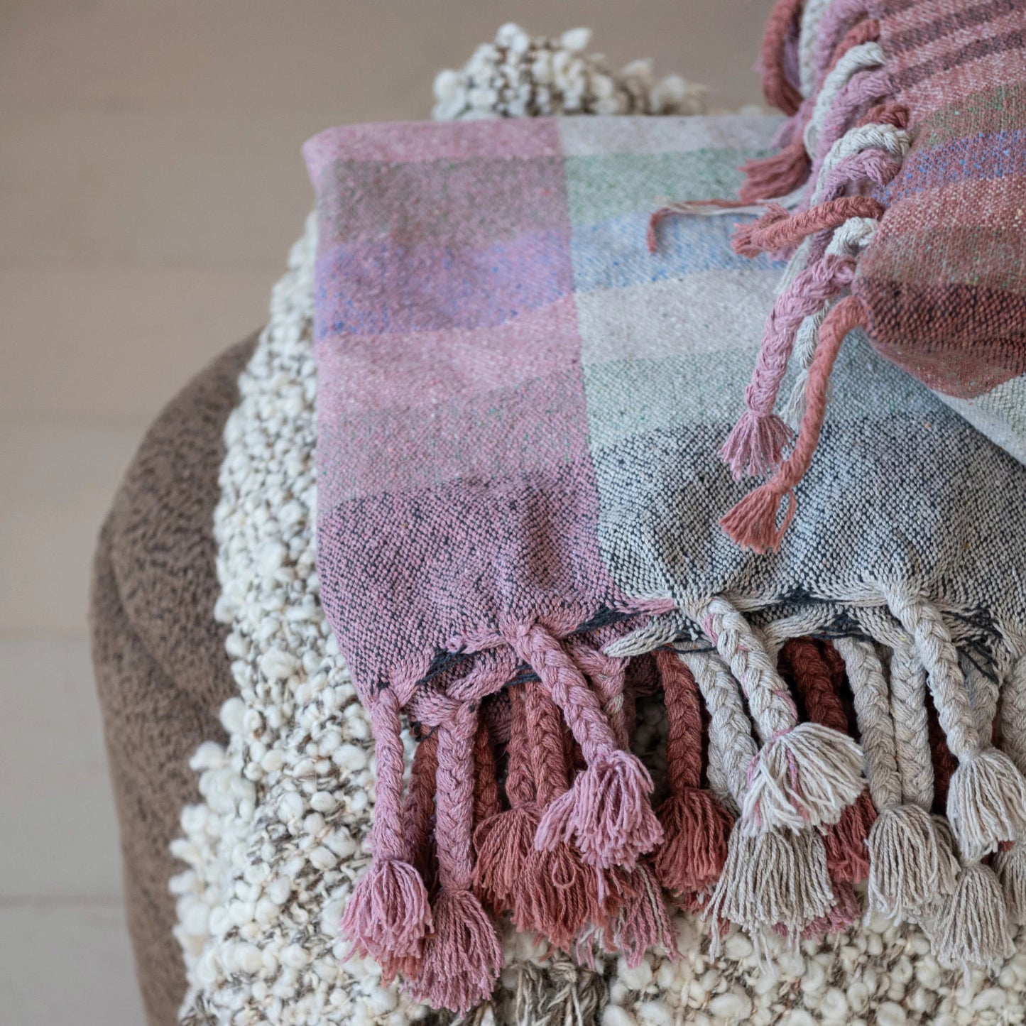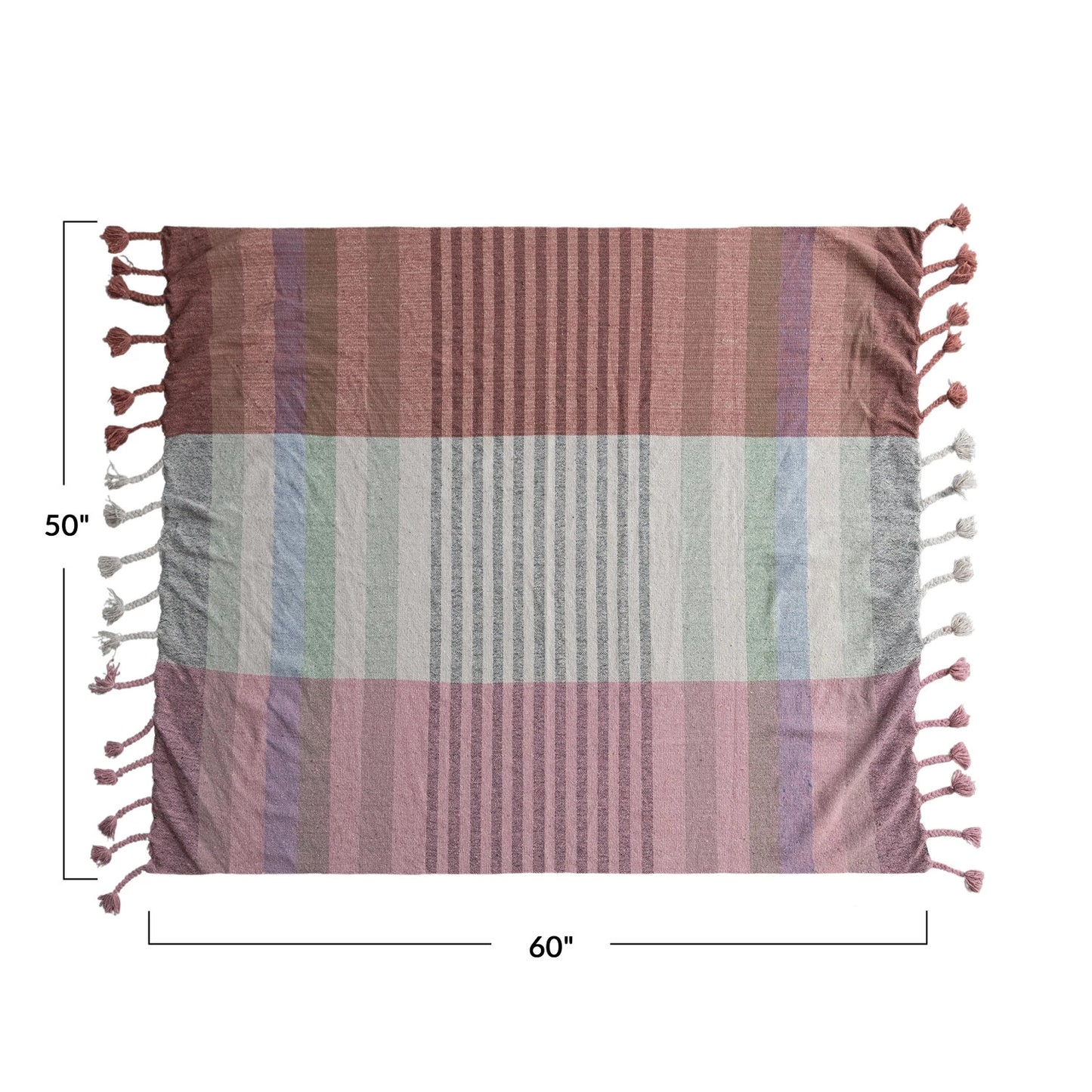 60"L x 50"W Woven Recycled Cotton Blend Throw w/ Braided Fringe, Multi Color Plaid