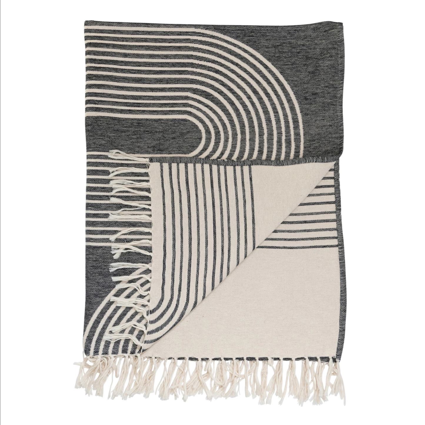 Cotton Jacquard Throw w/ Pattern & Fringe, Black & White