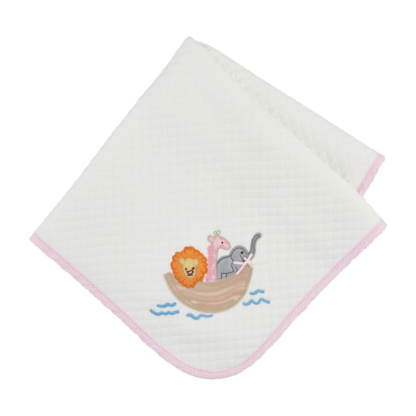 The delightful contrast gingham trim adds a touch of classic elegance, making it a perfect gift for baby showers or birthdays. Measuring 34 inches by 28 inches, it is an ideal size for cribs, strollers, or cuddling. Made from a blend of 51% cotton and 49% polyester, this blanket provides a gentle touch against the skin while ensuring durability and easy care.
