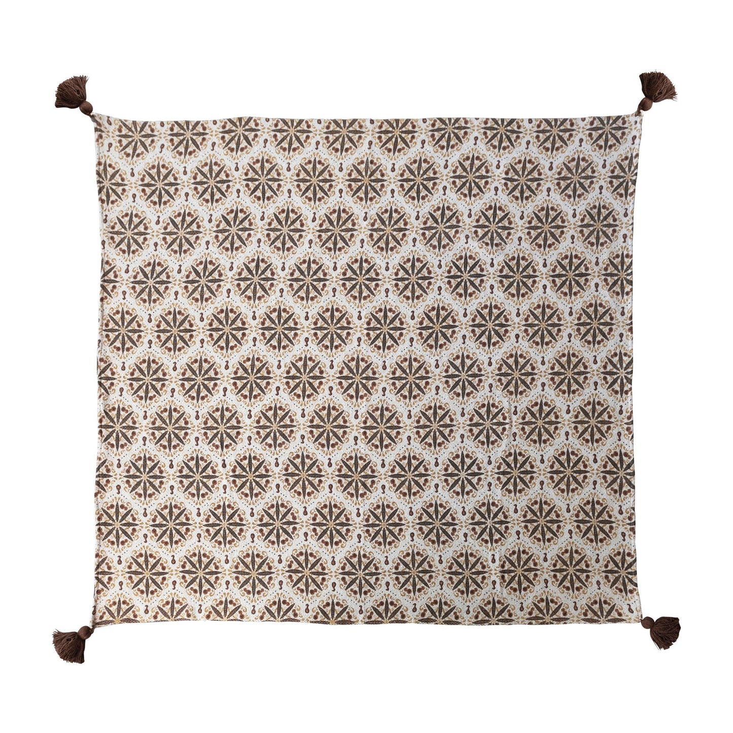 Recycled Cotton Blend Throw with Floral Medallion Print and Tassels