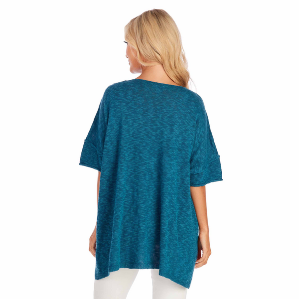 The design is enhanced with exposed accent seams, adding a touch of detail. This top is suitable for a wide range of body types due to its one size fits most feature. With a flattering length of approximately 27 1/2" from shoulder to hem, it is sure to please. Care is made easy as it can be machine washed cold with like colors on a gentle cycle. Non-chlorine bleach can be used if necessary, and it should be laid flat to dry. If needed, it can be cool ironed. Made from a combination of 64% cotton and 36% viscose, this top ensures both comfort and durability.