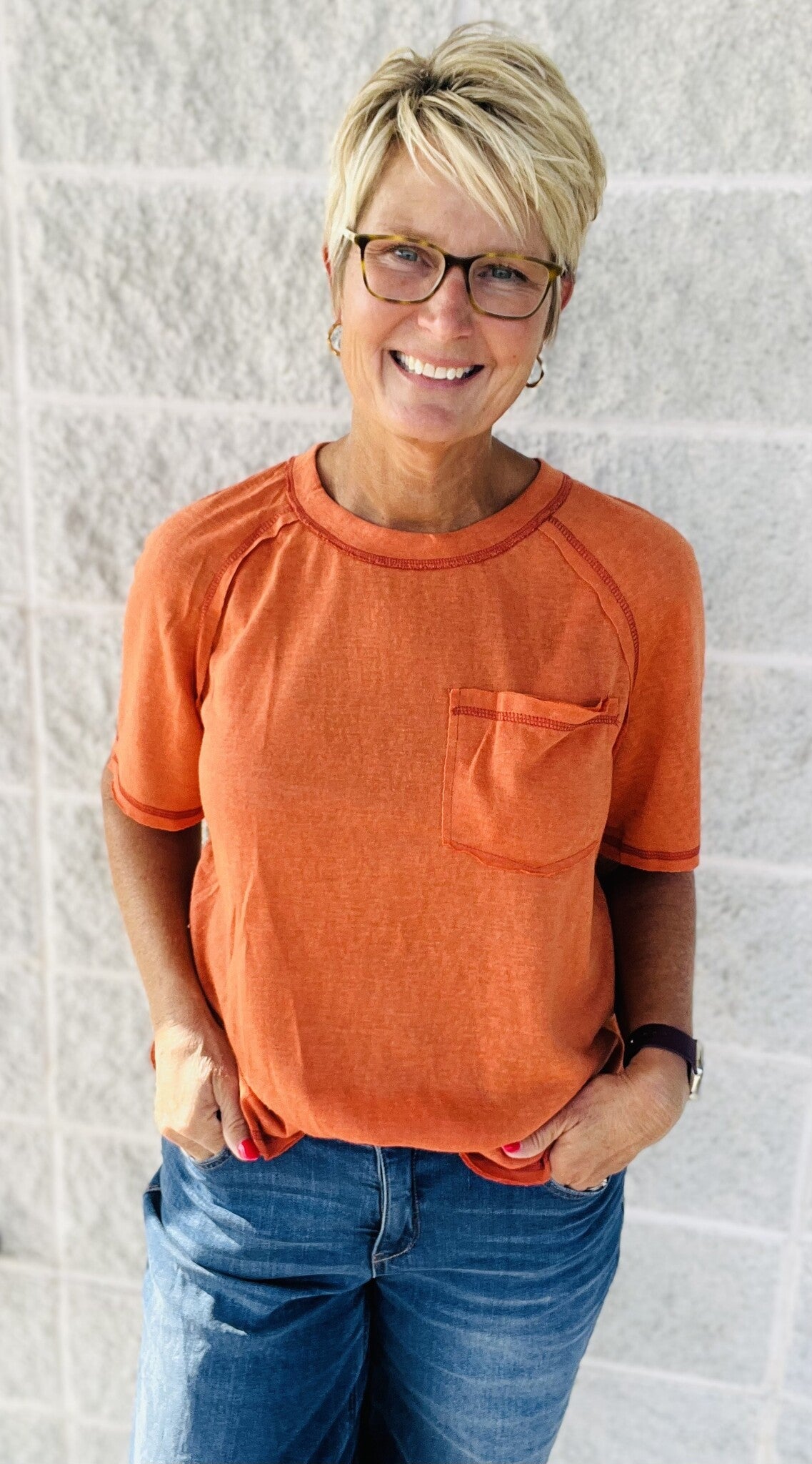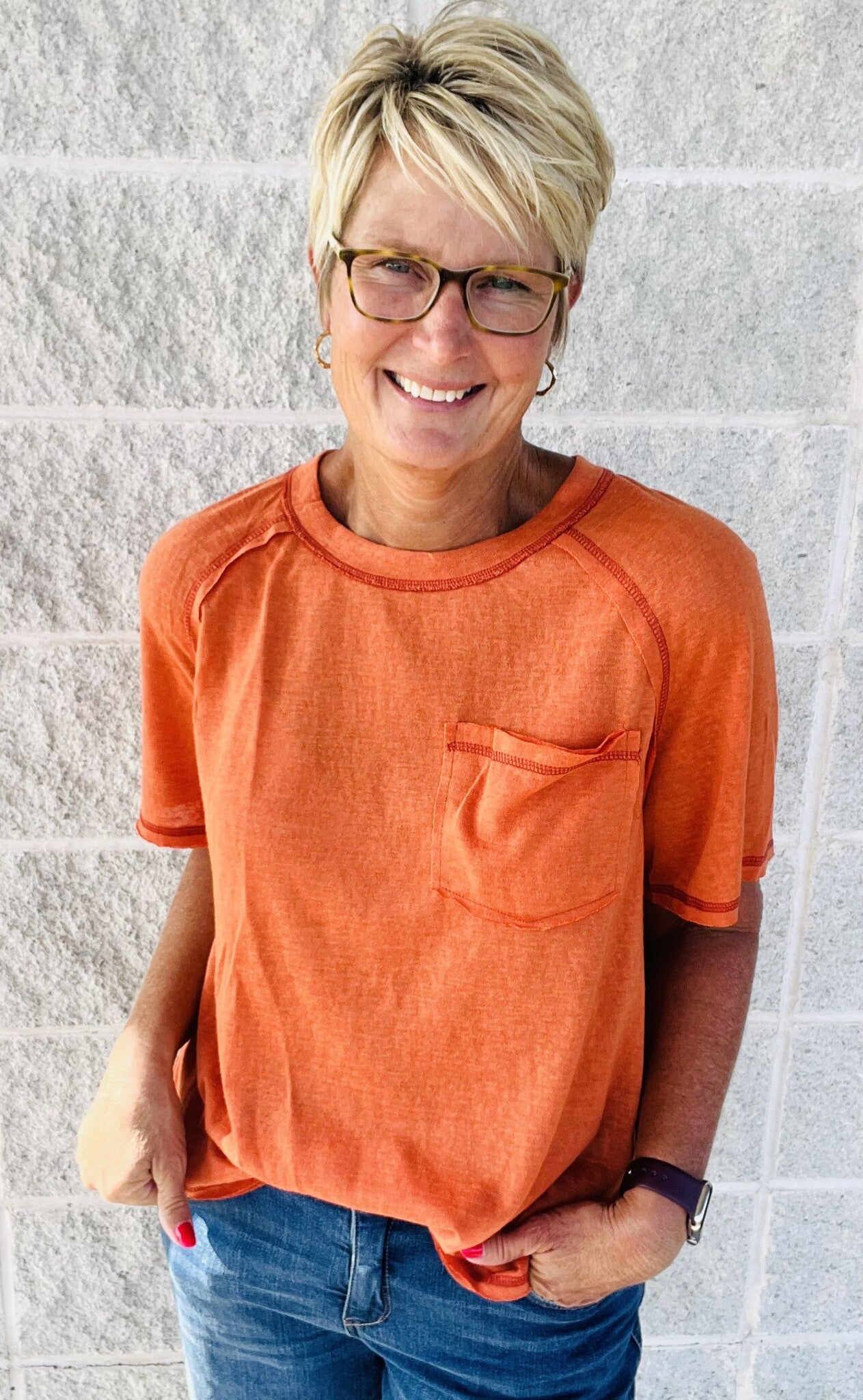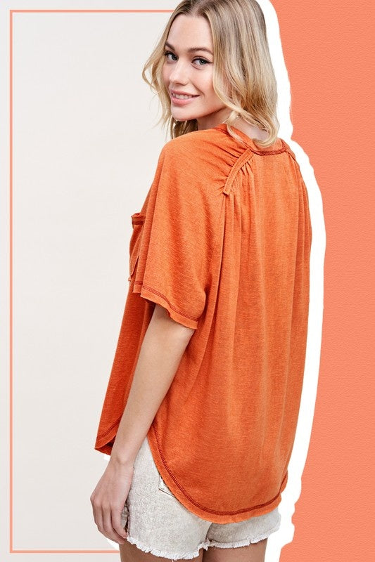 Raglan Short Sleeve Front Pocket Round Neck Top