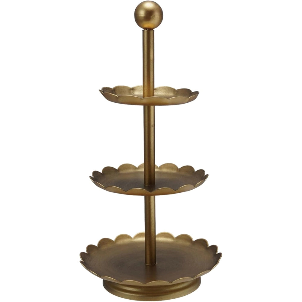 Decorative Metal 3-Tier Tray with Scalloped Edges