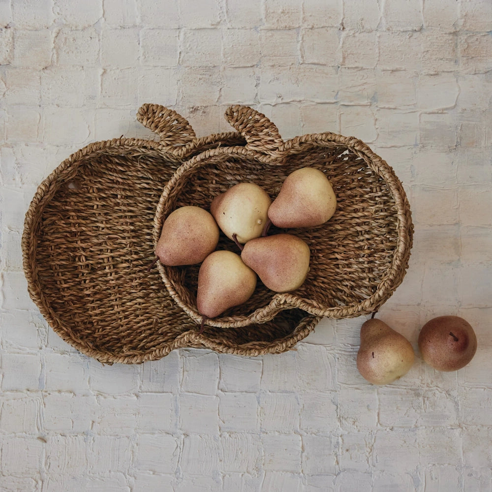 Set of 2 Hand-Woven Seagrass Pumpkin Shaped Trays