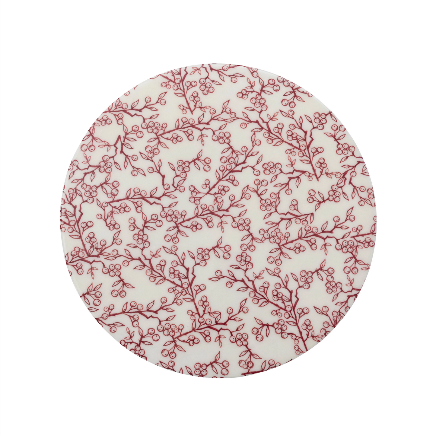 Enameled Mango Wood Pedestal with Berry Pattern, Burgundy and Cream Color