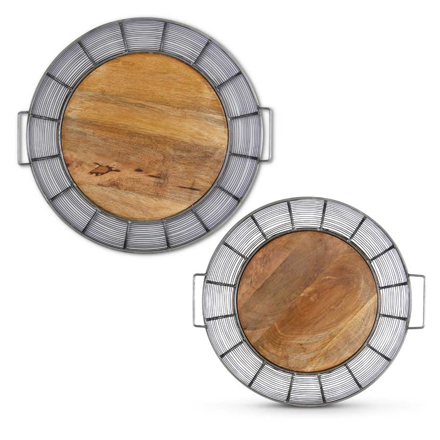 Large Metal Wire Trays w/Wood Center