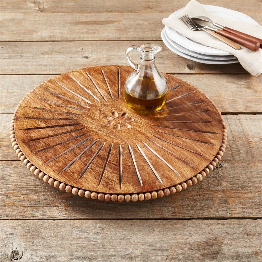 Beaded Wood Carved Lazy Susan