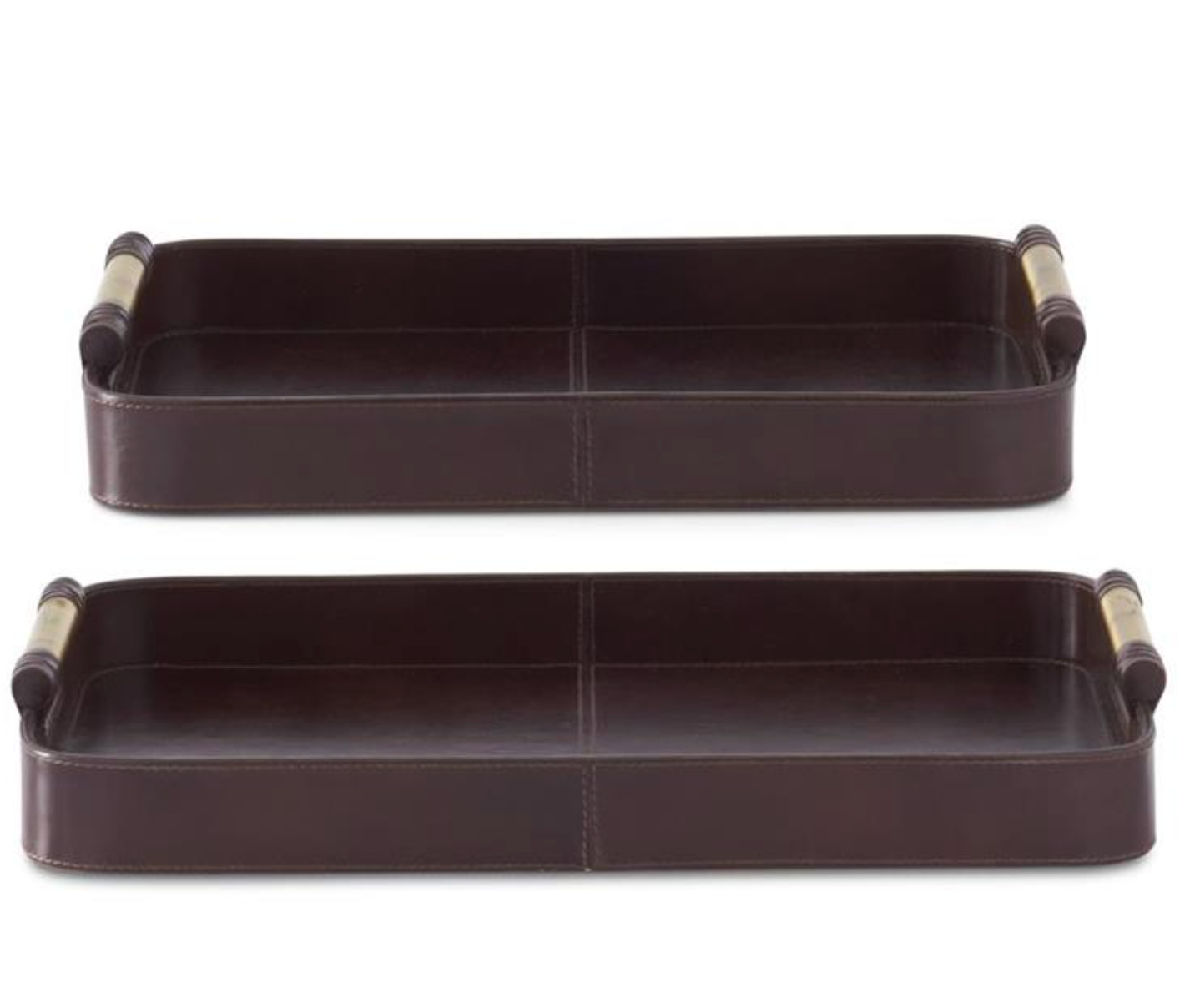 Brown Leather Tray W/Gold Handle- Large