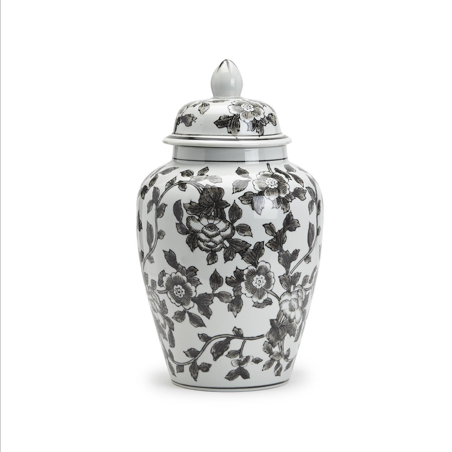 Black and White Floral Hand-Painted Ginger Jar - Porcelain