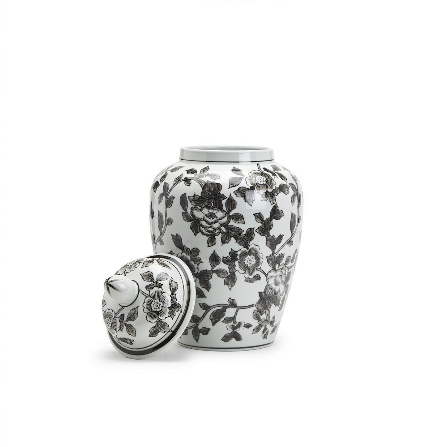 Black and White Floral Hand-Painted Ginger Jar - Porcelain