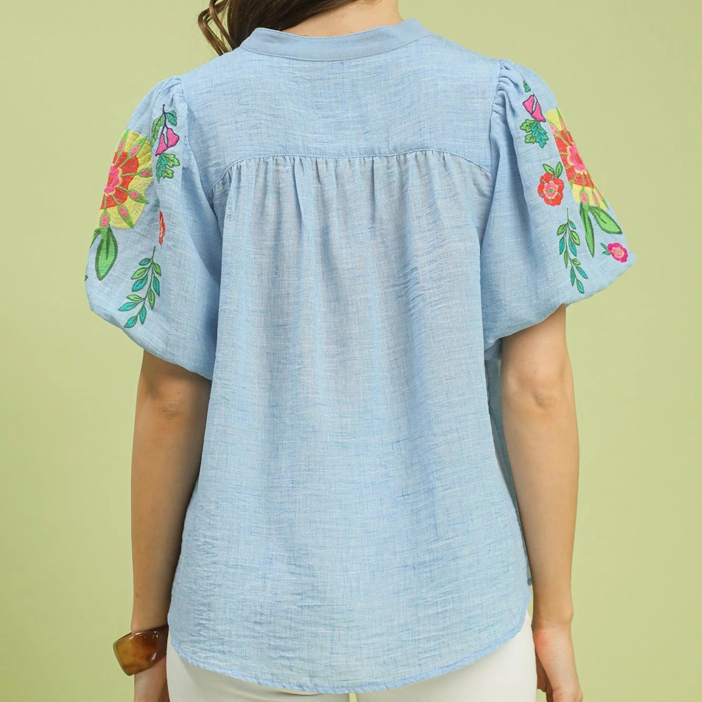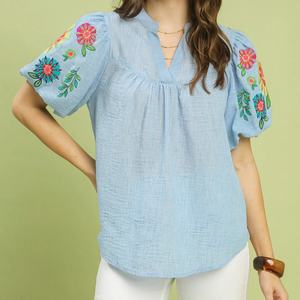 Add a touch of artisan charm to your wardrobe with the Embroidered Puff Sleeve Top by Umgee. Featuring delicate embroidery and a flattering silhouette, this top blends boho elegance with everyday comfort.