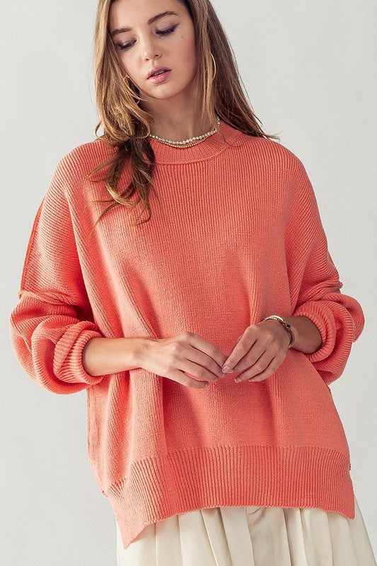 Oversized Side Slit Crew Neck Cozy Sweater
