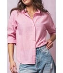 Timeless Pinstripe Button Down Casual Office Shirt Pink Small