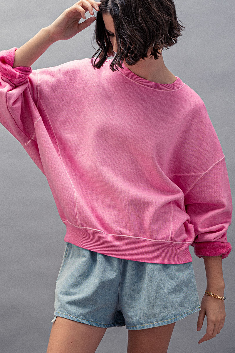 This garment-washed organic cotton blend creates a vintage-inspired aesthetic while maintaining a modern silhouette. The relaxed fit and premium fabric blend offer both style and comfort for everyday wear. Ideal for layering or wearing alone, this sweatshirt features quality construction with reinforced seams and ribbed trim details.
