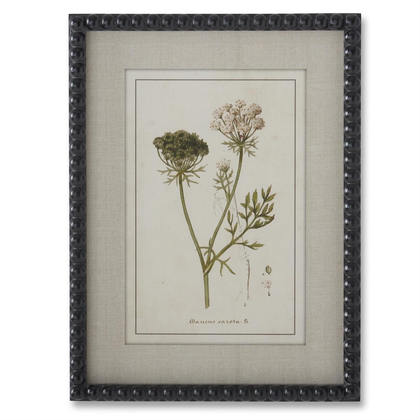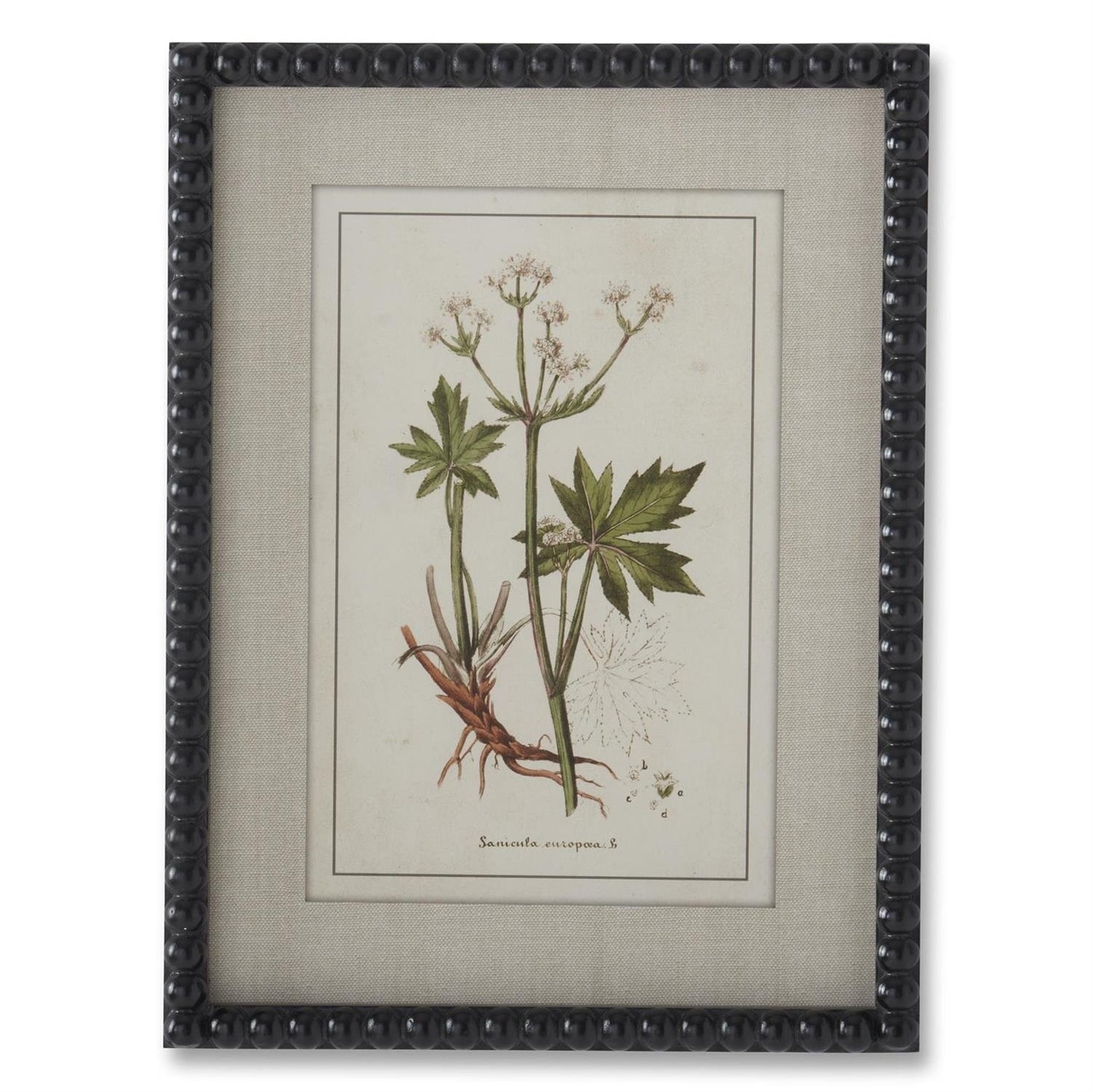 Black Bead Trim Framed Green & White Botanical Print (15.75H x 12W)