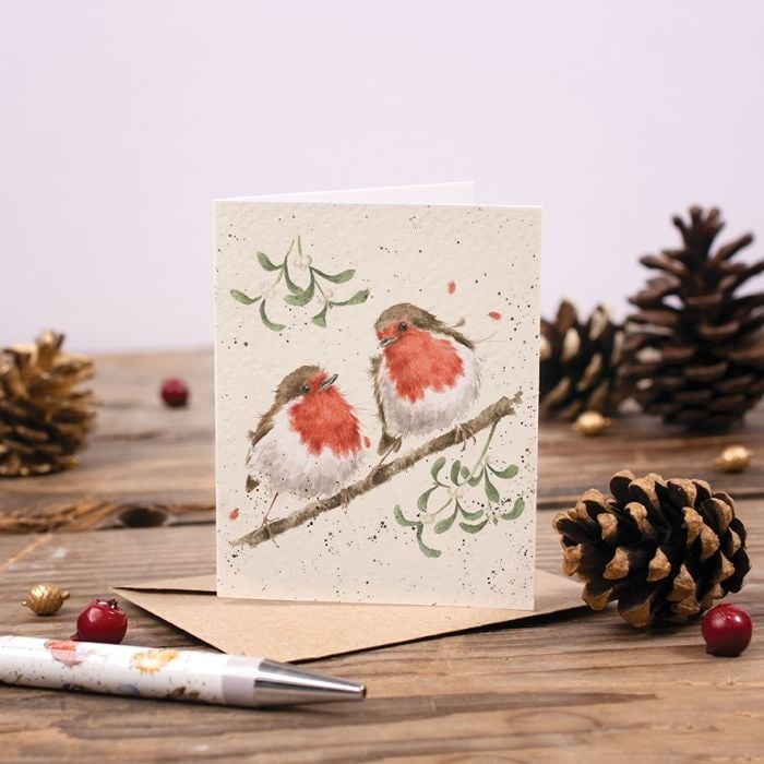 This gift enclosure card features two lovely robins. Perfect for adding to a gift and sending warm wishes throughout the holiday season. Printed on 350gsm sustainably sources textured board and supplied with a recycled kraft envelope.