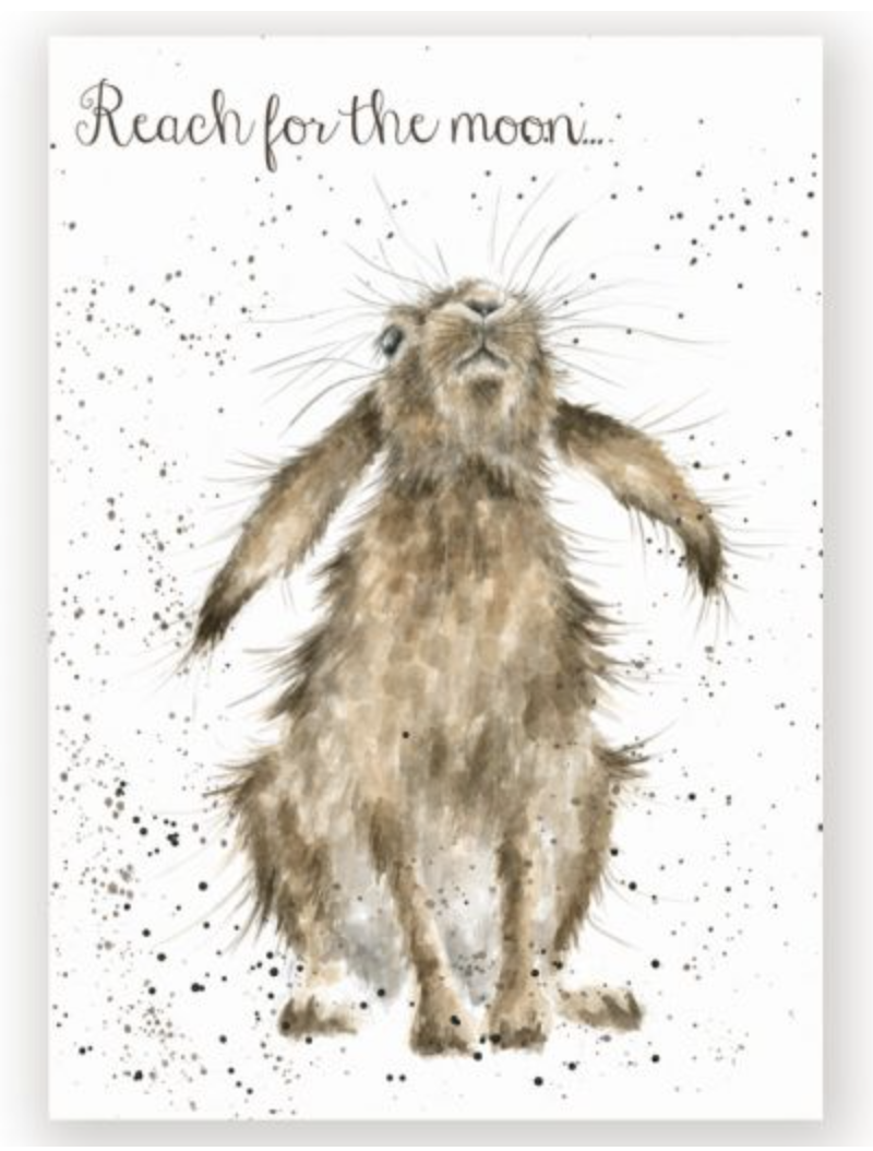The card is printed on high quality, textured board. It measures 6.77 inches x 4.84 inches and is supplied wrapped with a recycled, kraft envelope. The message inside this card reads '...even if you miss you'll land amongst the stars'.