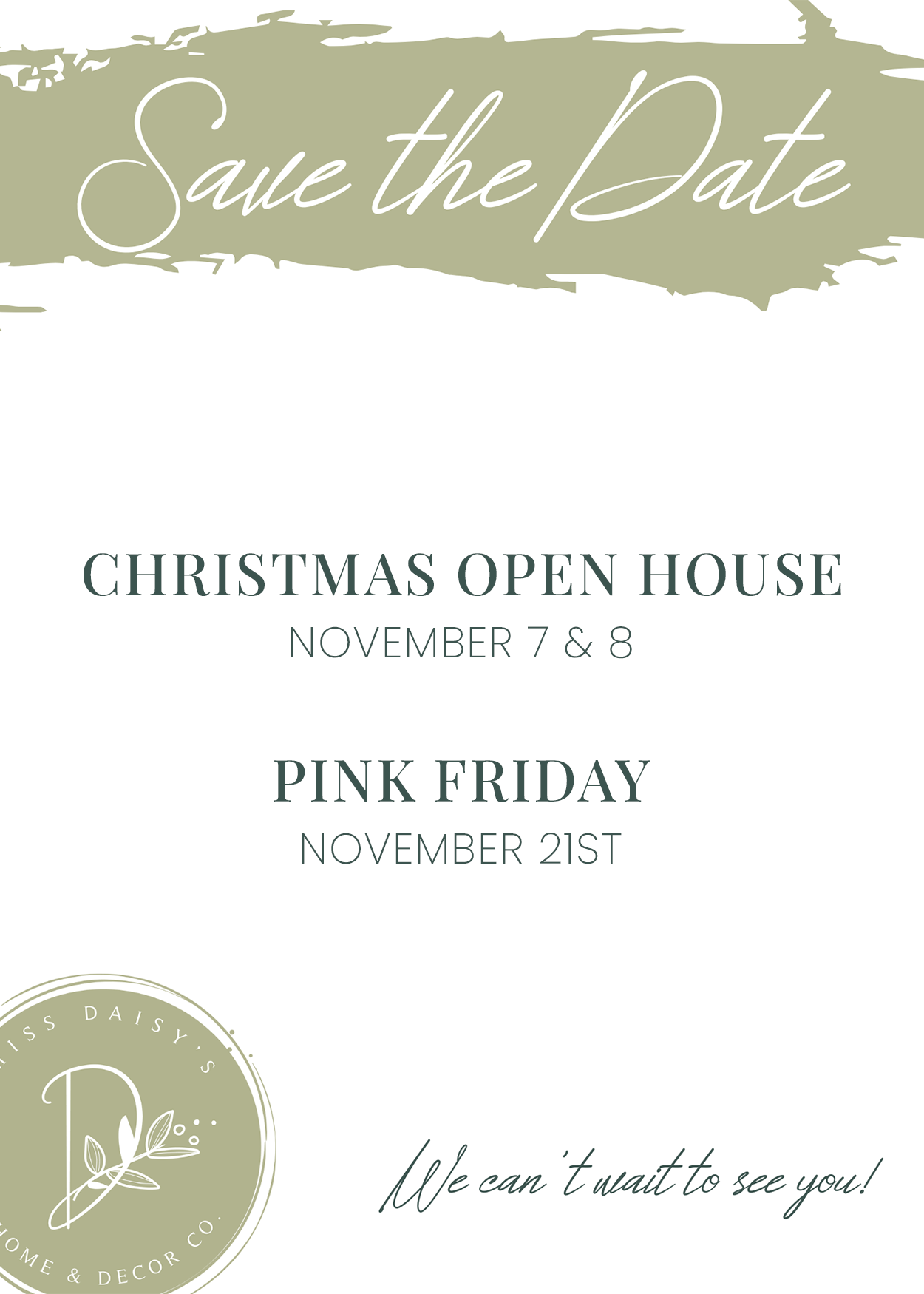 Miss Daisy’s events range from intimate styling workshops and seasonal décor showcases to larger open house weekends and private shopping nights. Some events focus on inspiration—offering sneak peeks of curated collections or new furniture lines—while others provide hands-on interaction with our design team. You might also find pop-up markets featuring local makers, exclusive trunk shows, or expert-led sessions on topics like shelf styling or holiday table settings. Each event is designed to be immersive, creative, and full of take-home inspiration.