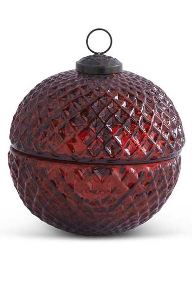 5 Inch Filled Red Mercury Glass Lidded Ornament Candle