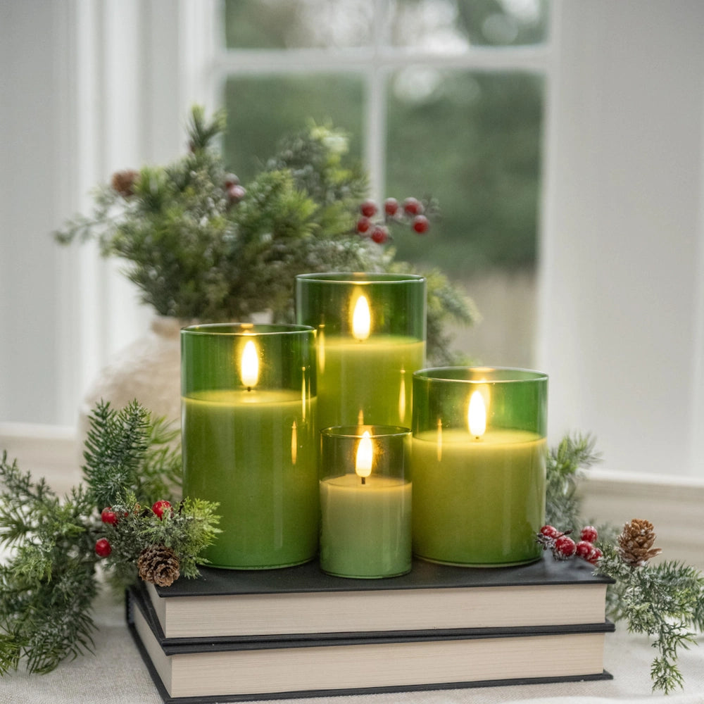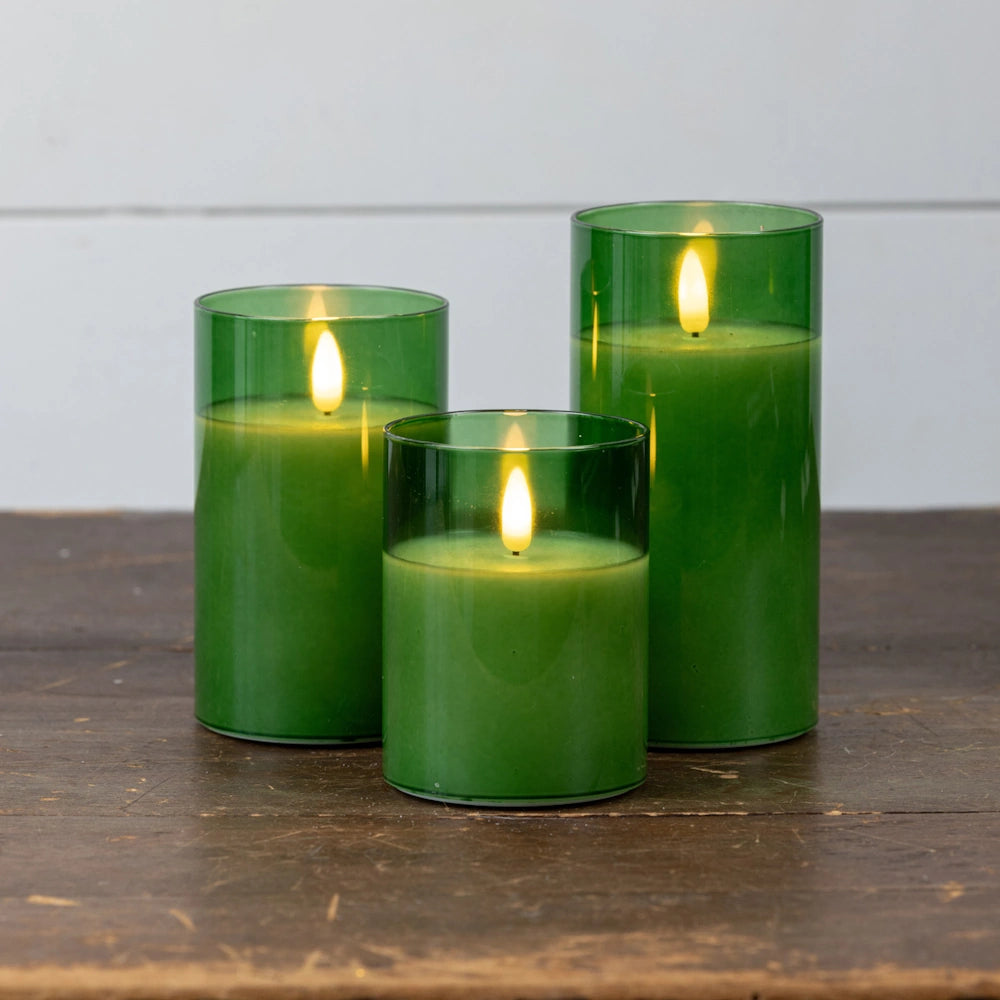 Pine Green Glass 3D Flame Candle