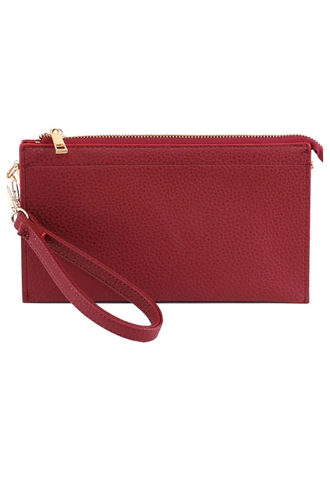 * detachable wristlet and shoulder straps.