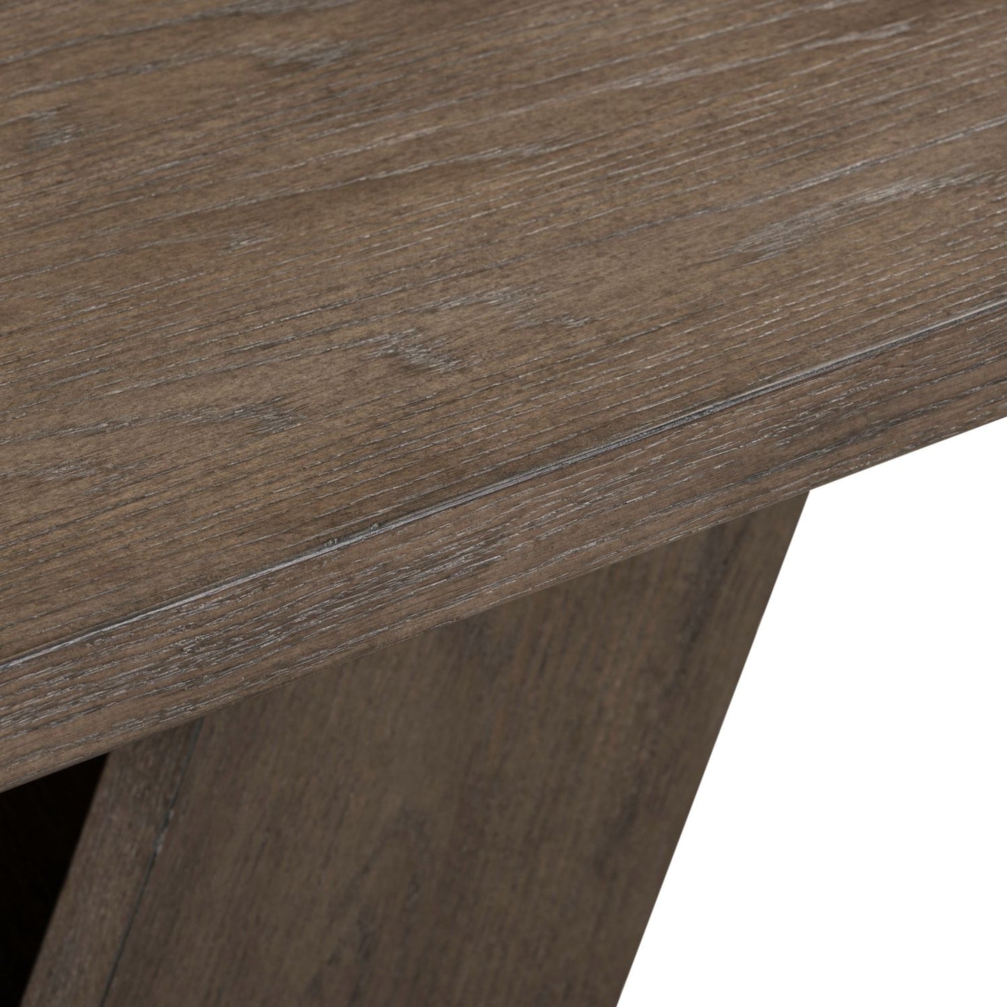 The Aspen Sky End Table blends contemporary design with everyday functionality. Crafted of Rubberwood solids with Split Heart White Oak veneers in a rich Weathered Saddle Brown finish, it features a striking crisscross body design that adds modern flair and structural interest. The open bottom shelf provides extra storage and display space, while the wide crisscross accents create a perfect nook to prop books and magazines. Completing the look, the solid plinth-style base reinforces the table’s sleek, contemporary style—making it a stylish and practical addition to any living space.