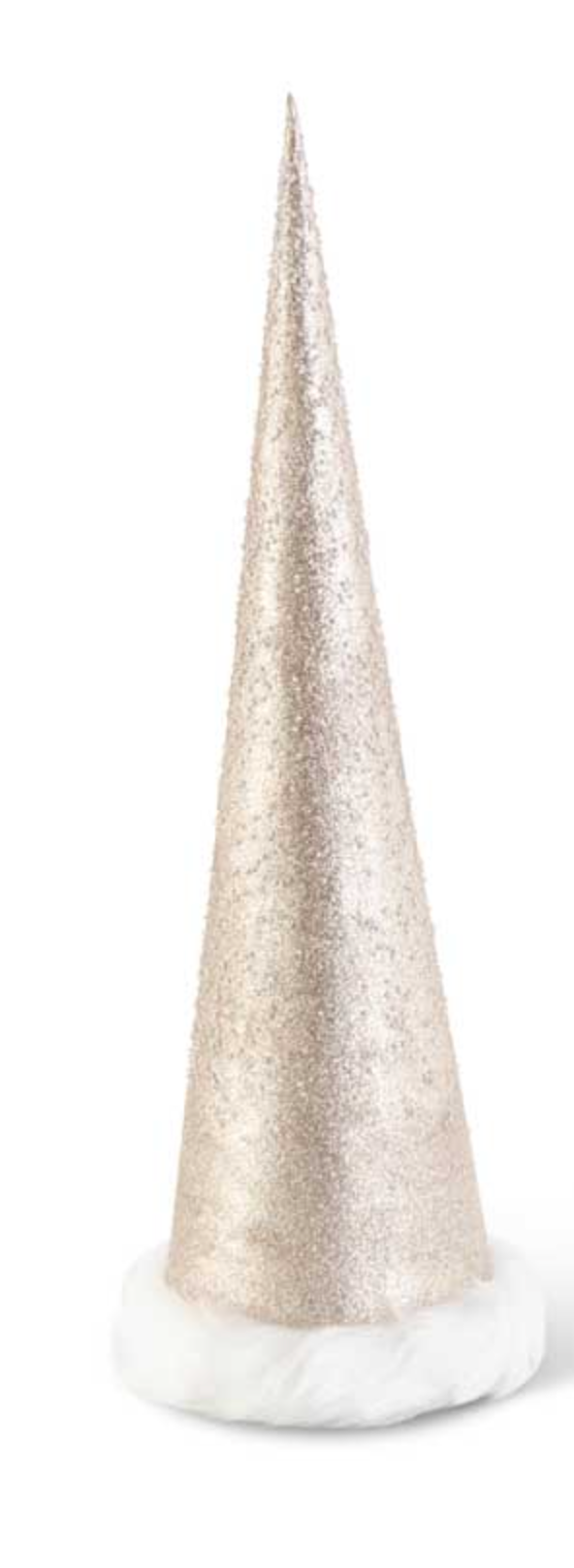 Beaded Gold Glittered Cone Tree w/Fur Trim- Large
