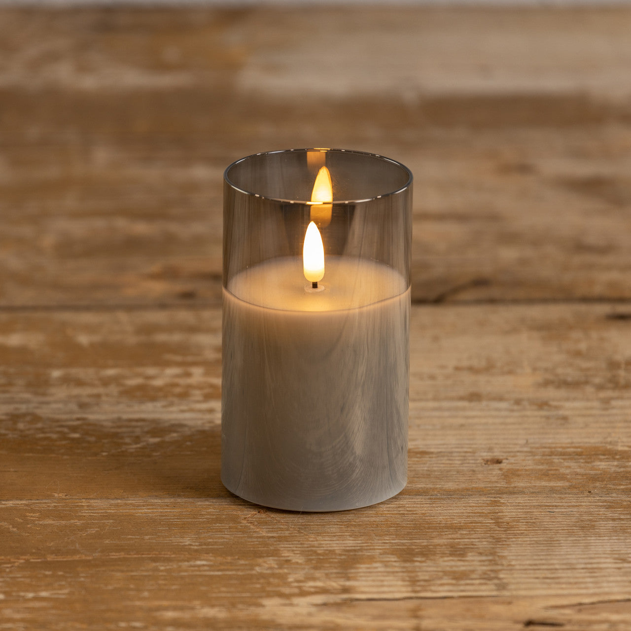 Experience the warm ambiance of a real flame without the worry. This 5-inch Black Glass 3D Flame Candle features a captivating, lifelike flickering flame encased in sleek charcoal glass. Perfect for adding cozy charm to any room, it creates a soothing atmosphere while being safe and easy to use. Elevate your space with this elegant, flameless candle that blends style and comfort effortlessly.
