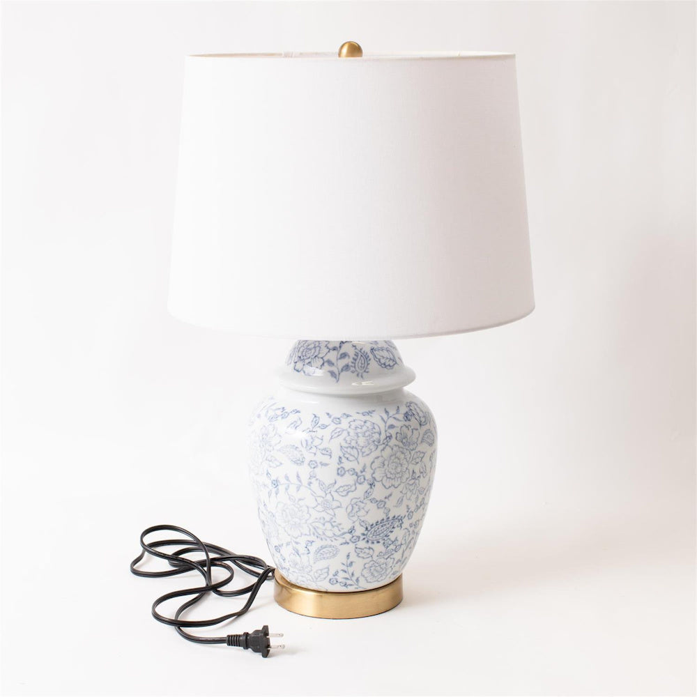 Blue Floral Ginger Jar Lamp with Shade