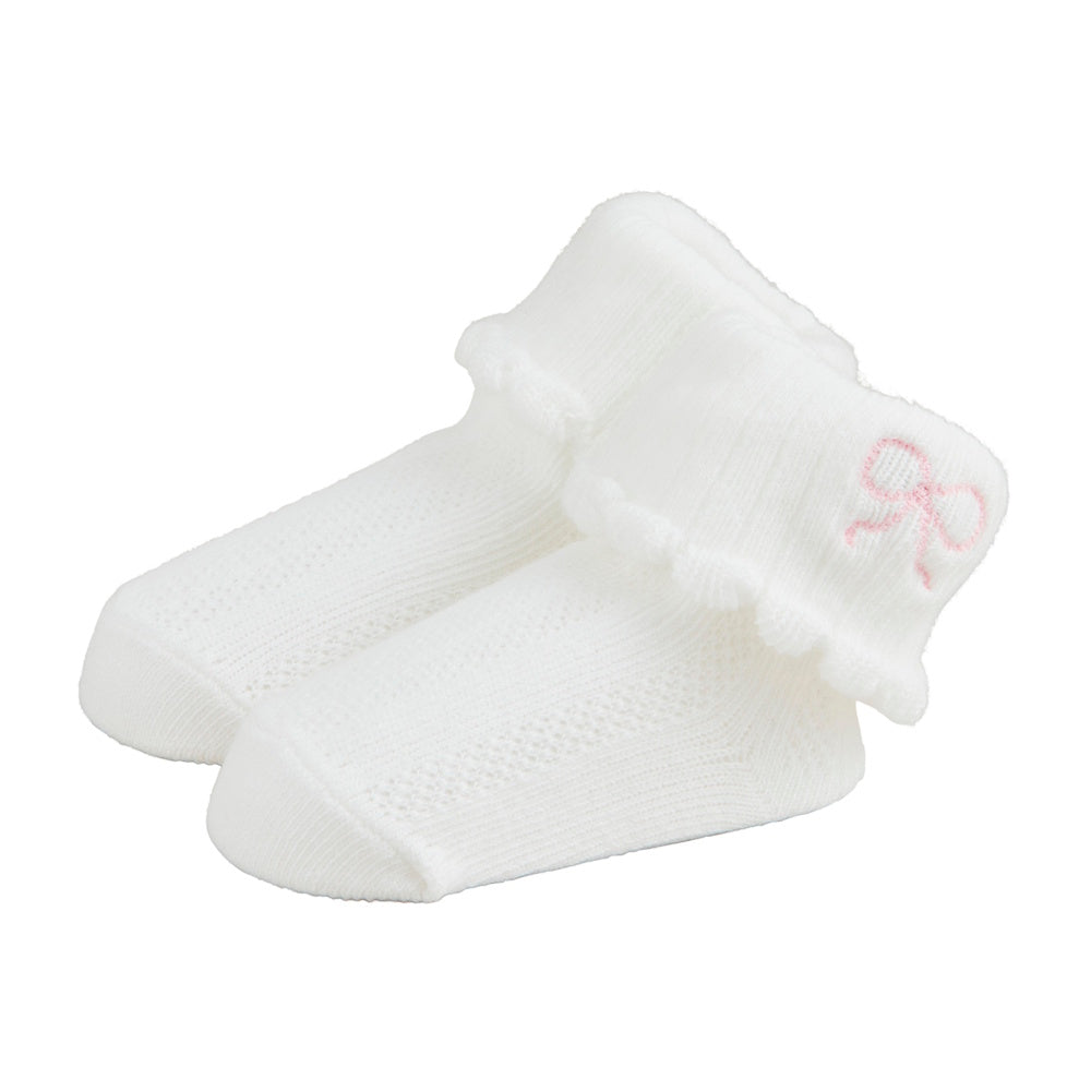Ideal for baby showers, newborn gifts, baptisms, or everyday wear, these bow pointelle socks blend comfort, elegance, and practicality. A beautiful staple designed for memory-making milestones.