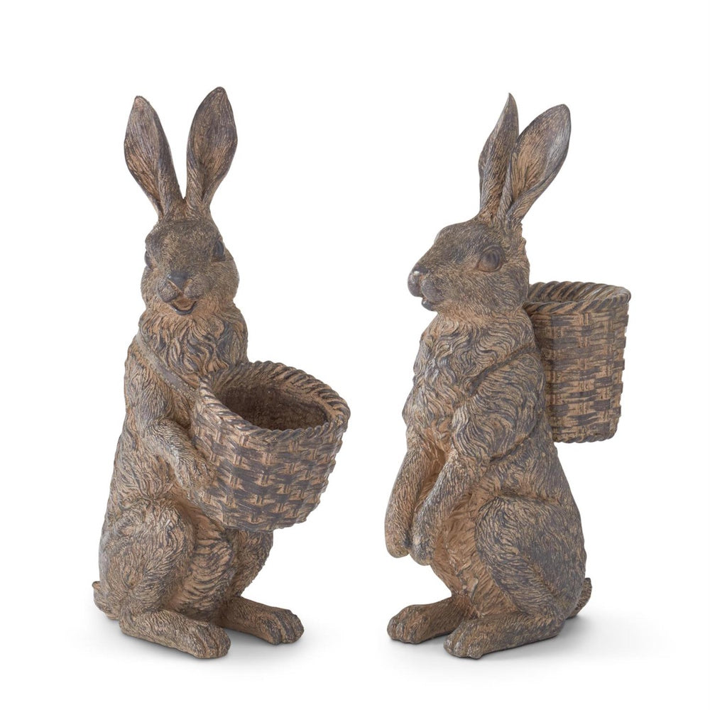 Featuring lifelike detailing and classic basket-holding poses, these resin rabbits add a touch of storybook elegance to your spring and Easter décor.