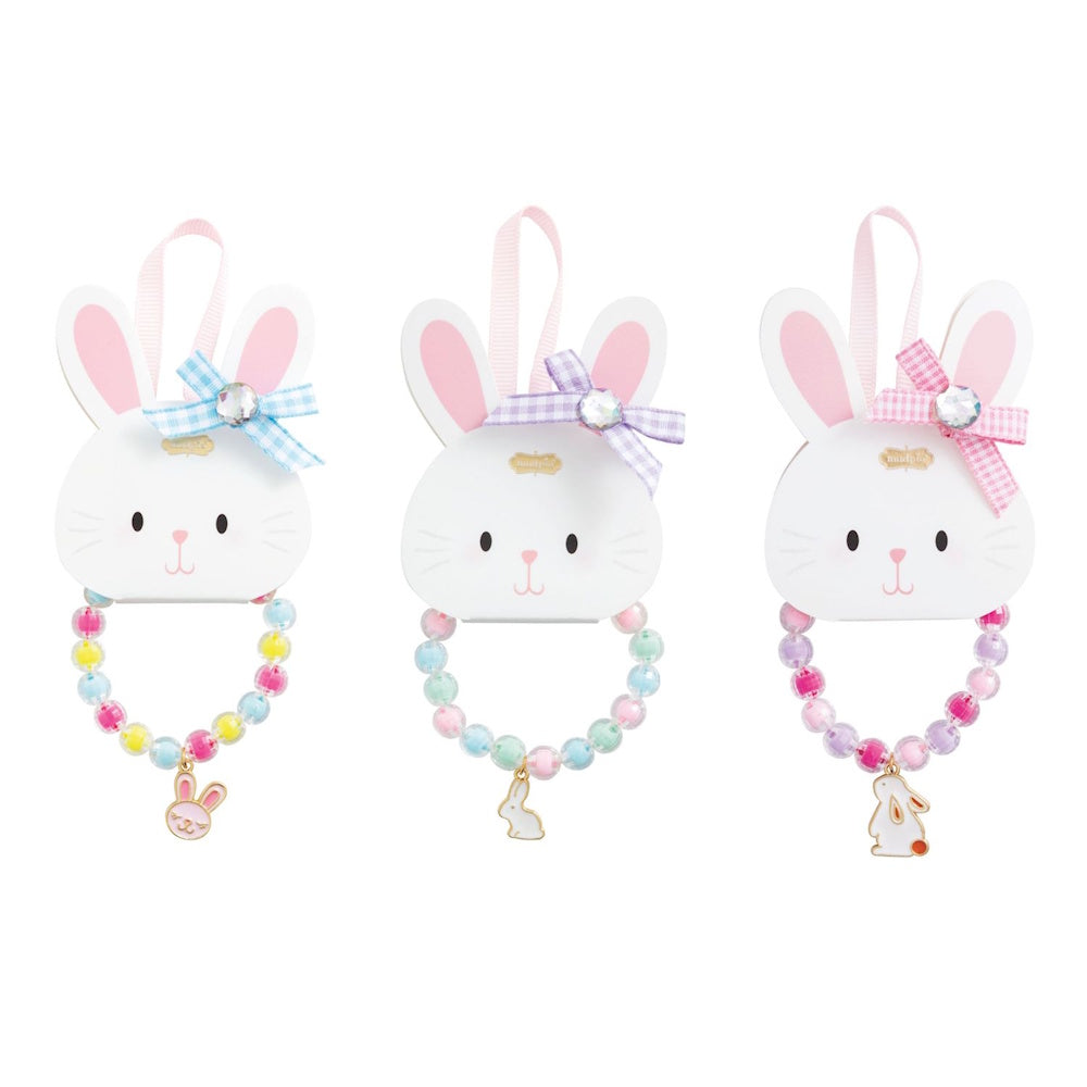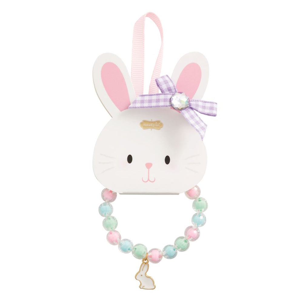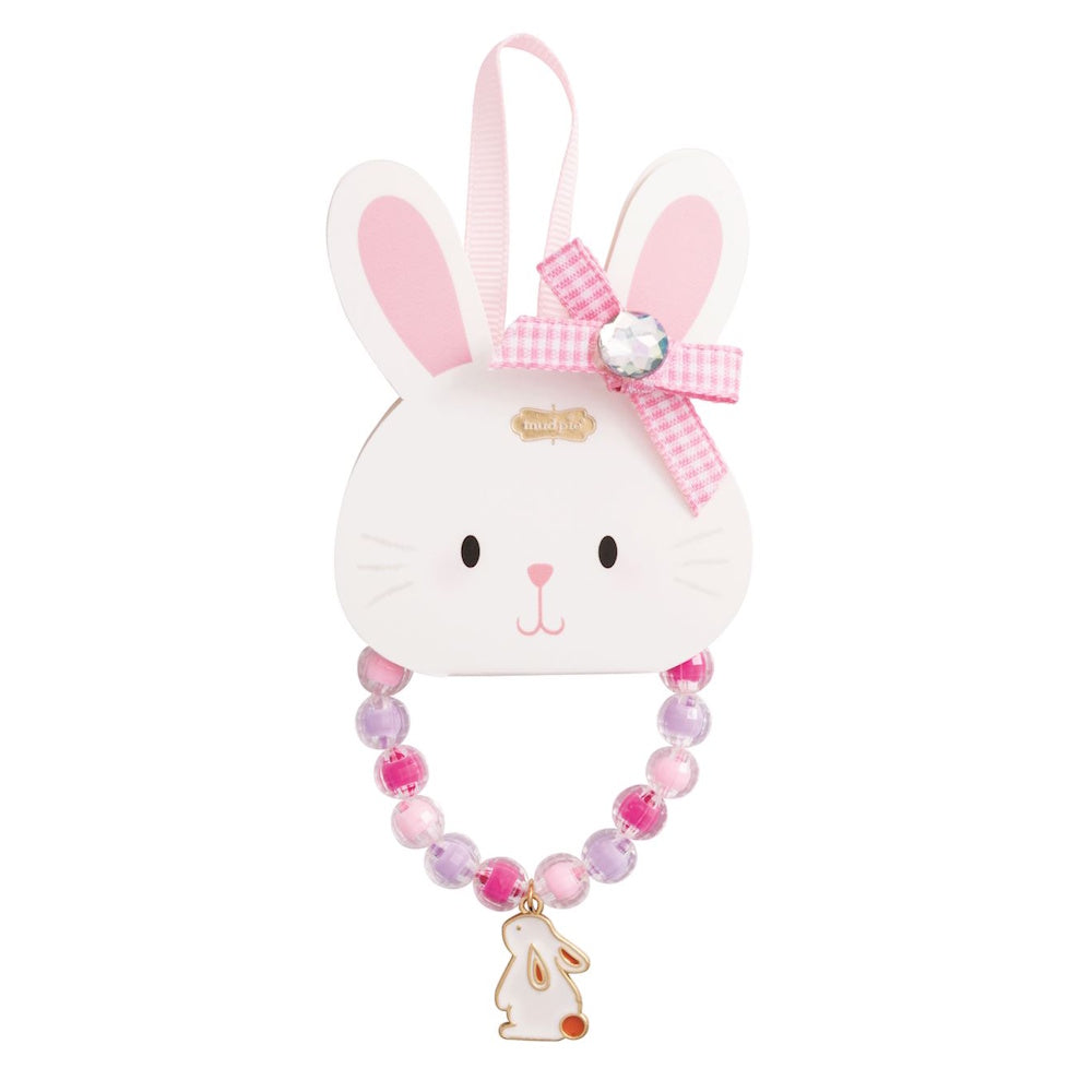 Stretch bead bracelet with enamel bunny charm.