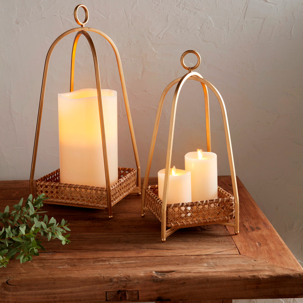 Cane Tray Lantern Set