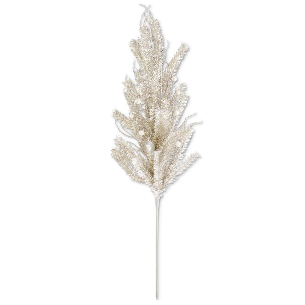 This elegant stem features sparkling champagne tinsel branches adorned with delicate faux pearls, adding texture and sophistication to your holiday centerpieces, wreaths, or tree décor.