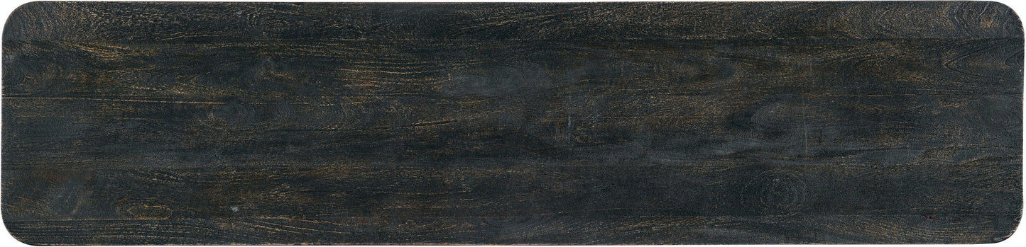 Globally inspired and authentically designed, the narrow Arness Console Table is crafted of Mango Wood with a transparent black finish revealing natural color and grain variations for a casual rustic appeal.